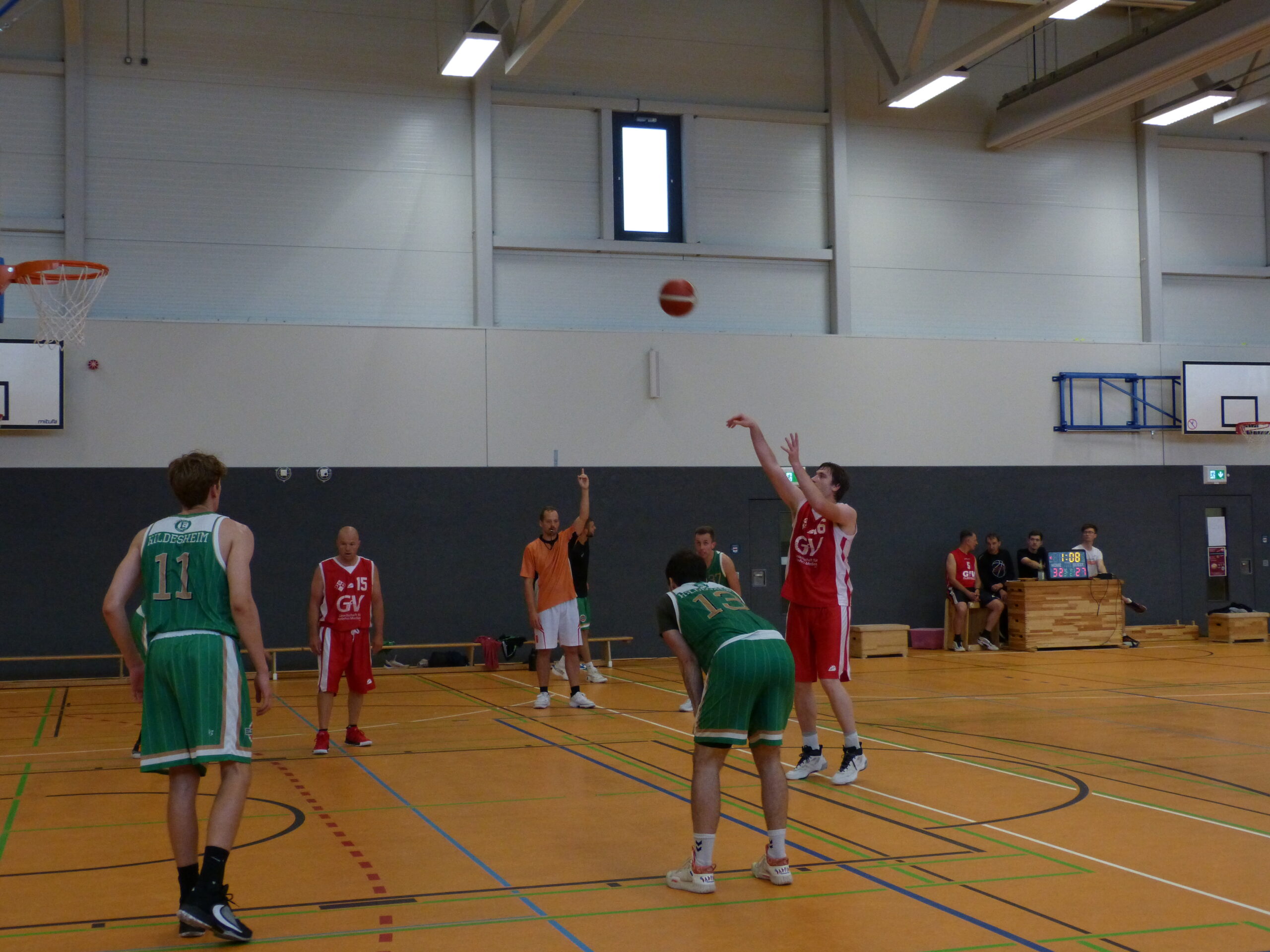 Kurz vor 19 h stieg dann das große Finale zwischen Hildesheim und dem MTV I und damit zwischen den beiden eindeutig besten Mannschaften des Turniers. Hildesheim startete stark in dieses Finale. Insbesondere über ihren starken und routinierten Aufbauspieler brachten sie den Ball immer wieder sehr schnell und souverän nach vorne und ihre starken Distanzwerfer versenkten einen Dreier nach dem anderen. Der MTV I konnte sich aber insbesondere durch ein starkes Spiel über ihren Center René Heimbuch immer wieder zurück ins Spiel kämpfen und wenige Minuten vor Spielende war der Spielstand wieder ausgeglichen. Durch eine ganz starke Schlussphase mit mehreren Dreiern und starken Fast Breaks gelang Hildesheim aber letztendlich ein verdienter Turniersieg.